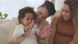 4k video footage of a young couple sitting on the sofa at home and bonding with their adorable daughter - 4K stock video