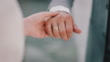 Cropped image of bride exchanging ring with bridegroom. Close-up of couple holding hands during wedding ceremony. They are celebrating life events in church.