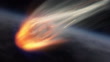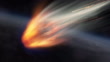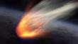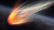 A bright burning comet flying through the Space, leaving a trace. Burning meteorite