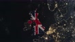 Dark map highlighted in British flag, zooming in from the space through a 4K photo real animated globe, with a panoramic view consisting of Asia, Africa and Europe. Epic spinning world animation, Realistic earth, highlight, satellite, United Kingdom, UK - 4K stock video