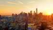A sunset aerial view of downtown Manhattan in New York City.