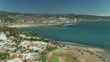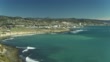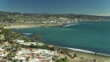 Aerial establishing shot of Cíbola de Mar and Playa San Miguel in Ensenada, Baja California. The beach is a famed surf break.