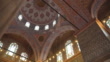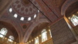 Low angle panning view: Interior of the Sultanahmet Mosque or Blue Mosque, a religious symbol and Turkish culture by tiled floor in Istanbul, Turkey. - 4K stock video