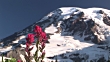 CU, SELECTIVE FOCUS, Magenta Paintbrush (Castilleja parviflora var) with snow capped Mount Rainier in background, Mount Rainier National Park, Washington, USA - HD stock video