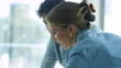 Male and female business people using a laptop computer in the office. - 4K stock video