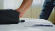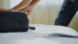 Male hands packing a backpack and taking the passport off the hotel bed - 4K stock video