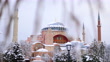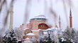 Outside view of the snowy Hagia Sophia Mosque, snowy view of Hagia Sophia, Hagia Sophia and Blue Mosque, snowy Hagia Sophia Square, inside the city, the mosque minaret, 4K Snowy Istanbul Shots in Winter - 4K stock video