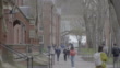 Redbrick buildings, Harvard University, Cambridge Mass. Students walk through quad on a grey day past the college buildings - 4K stock video