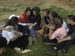 GV Ethnic Albanian refugee children (surivors of Serb atrocities which left father dead) sitting in field