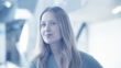 Scanning female identity in office with facial recognition technology - 4K stock video