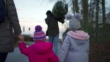 Serene children going home with mother and a father carrying a Christmas tree - HD stock video