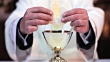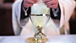 Hands of a man breaking and sharing holy bread