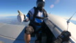 They perform mid-air stunts after jumping from plane; rural landscape below