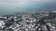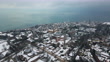 Snowy Sultanahmet Square, Aerial snowy Hagia Sophia, Aerial snowy Istanbul, Hagia Sophia and Blue Mosque, snowy Hagia Sophia Square, Hagia Sophia through the city, Hagia Sophia city and the sea, mosque minaret, 4K Snowy Istanbul Drone Shots in Winter - 4K stock video