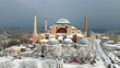 Snowy Sultanahmet Square, Aerial snowy Hagia Sophia, Aerial snowy Istanbul, Hagia Sophia and Blue Mosque, snowy Hagia Sophia Square, Hagia Sophia through the city, Hagia Sophia city and the sea, mosque minaret, 4K Snowy Istanbul Drone Shots in Winter - 4K stock video
