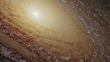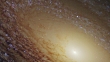 Spiral galaxy NGC 2841. Rostrum footage of a Hubble Space Telescope (HST) image of the spiral galaxy NGC 2841. This galaxy lies around 46 million light years from Earth in the constellation Ursa Major. NGC 2841 has a weakly active nucleus known as as a low ionisation nuclear emission-line region (LINER). LINERs are characterised by spectral emission lines from weakly ionised or neutral atoms.