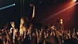 Woman stage diving on concert.