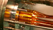 The electrodes (gold) for the ALPHA Penning trap being inserted into the vacuum chamber and cryostat assembly. This is the trap used to combine or 'mix' positrons and antiprotons to make antihydrogen - HD stock video
