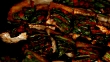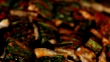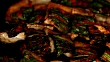 View of gat (leaf mustard) kimchi (Popular traditional side dish in Korea) on top of the grilling pork belly - 4K stock video