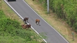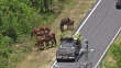 WS AERIAL POV View of Wild horses on road as cars approach at Ensenada Sombe / Vieques, Puerto Rico, United States - HD stock video