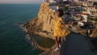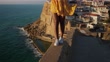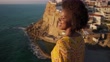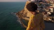 Woman dancing on the cliff in Azenhas do Mar - 4K stock video